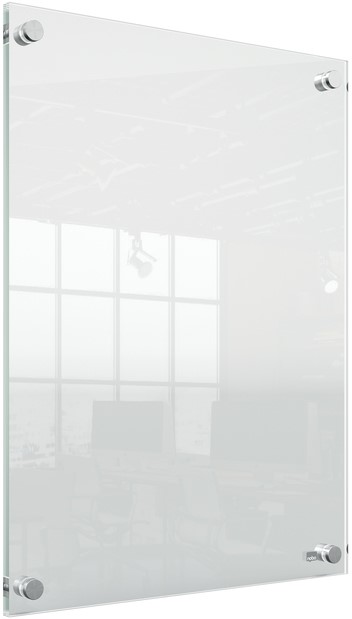 Dit wandgemonteerde poster frame van acryl met randloos ontwerp heeft een stijlvolle en moderne uitstraling. Het naadloze poster frame van acryl met hoekmontage maakt een snelle en eenvoudige wisseling van inhoud mogelijk in staand of liggend formaat, terwijl je documenten beschermd blijven. Het acryloppervlak kan gemakkelijk worden schoongemaakt, waardoor dit poster frame de ideale oplossing is voor de weergave van tijdelijke of permanente mededelingen, documenten of informatie.