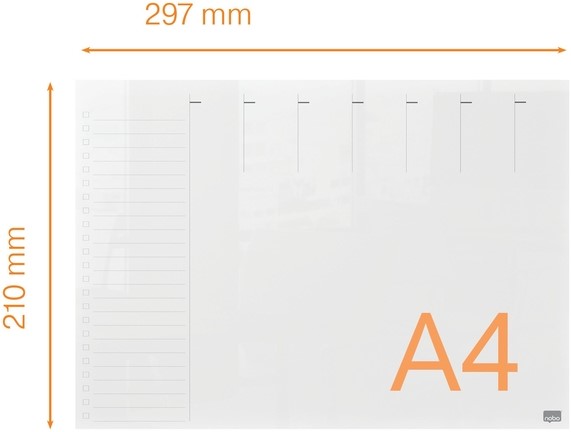 Acryl whiteboard weekplanner met modern randloos ontwerp dat eenvoudig kan worden schoongemaakt en opnieuw gebruikt.