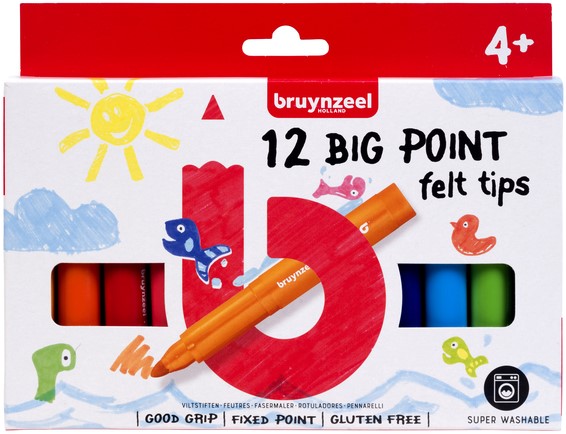 Viltstift Bruynzeel Kids Big Point set à 12 kleuren