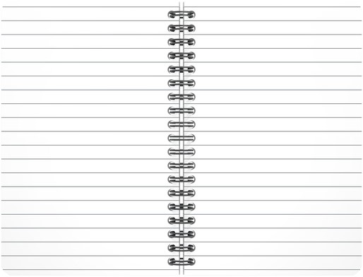 Zwarte geplastificeerde dubbelspiraal binding om het notebook geheel plat open te leggen voor een maximaal comfort.
