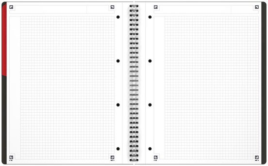 De robuuste zwarte dubbele spiraalbinding zorgt ervoor dat het notebook plat blijft liggen of gemakkelijk dichtgeklapt kan worden voor een maximaal comfort en flexibiliteit.
