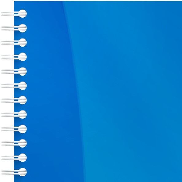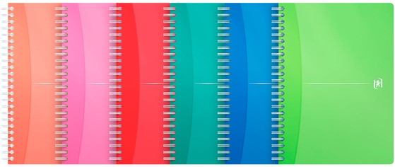 Een spiraalblok met flexibele, waterafstotende kunststof kaft in vrolijke kleuren.