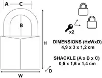 De beugel met een diameter van 5 mm is 16 mm lang en gemaakt van gehard staal, wat extra weerstand biedt tegen snijden en zagen.