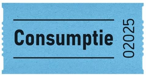 Grote duidelijke kleurrijke consumptiebonnen van 57x30mm op een rol van 1000 bonnen.