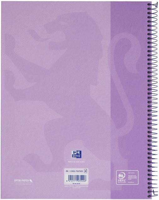 Notitieboek Oxford Touch Europeanbook A4+ 4-gaats lijn 160 pagina's pastel paars