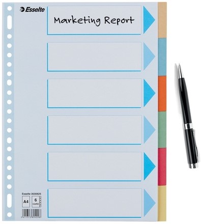 Tabbladen Esselte Standaard A4 6-delig karton 11-rings met voorblad assorti