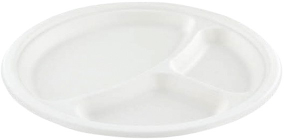 Bord IEZZY Ø260mm 3 vaks suikerriet wit 50 stuks