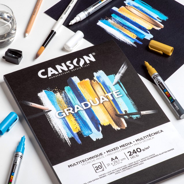 Mixed mediapapier Canson Graduate Mixed Media 20vel 240gr A4 zwart