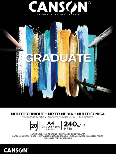 Mixed mediapapier Canson Graduate Mixed Media 20vel 240gr A4 zwart