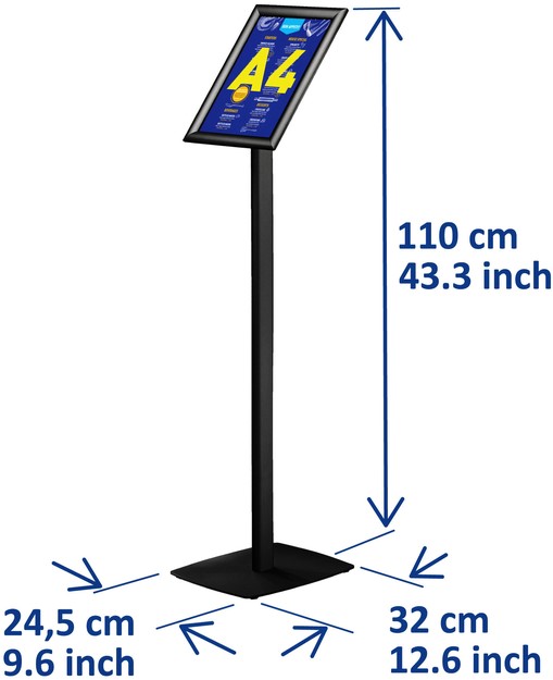 Strak zwart design informatiestandaard inclusief A4 formaat verstekhoek kliklijst met Easy-Click systeem voor een snelle, eenvoudige en representatieve presentatie.