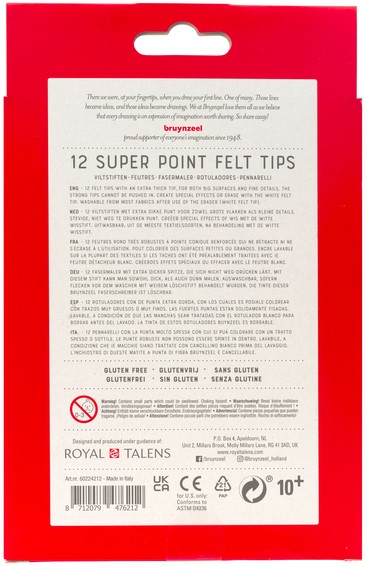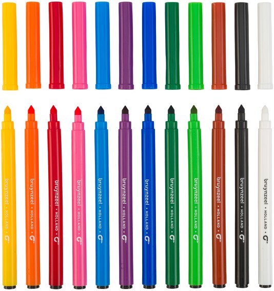 Viltstift Bruynzeel Super Point met witte wisstift set à 12 kleuren
