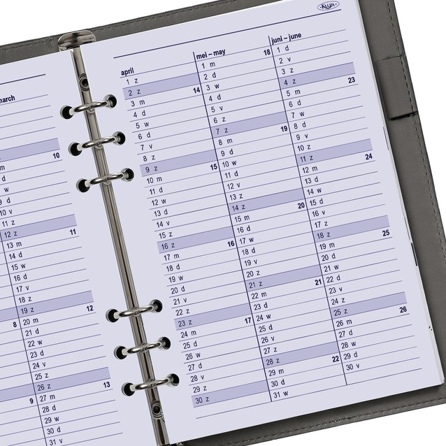 Dit navulpakket werkt met A5 organizers van vele populaire merken, waaronder Kalpa, Succes, en Filofax. Houd uw agenda georganiseerd en op koers!