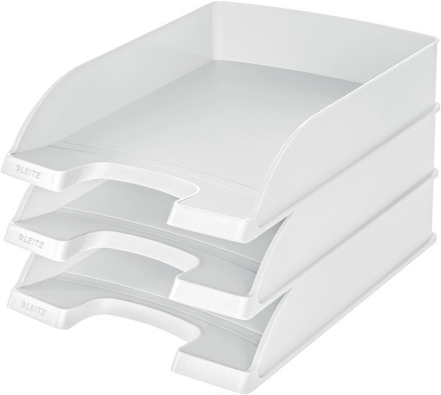 Robuuste witte brievenbak van eersteklas kwaliteit. Onderdeel van het modulaire brievenbaksysteem van Leitz, waarbij alle 3 de formaten verticaal op elkaar of "getrapt" gestapeld kunnen worden. Qua design en kleur afgestemd op de opbergproducten uit de reeks Leitz Plus.