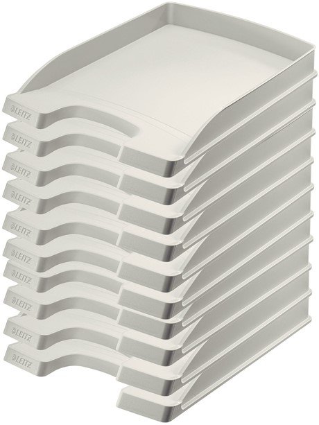 Robuuste grijze brievenbak met kleine capaciteit en premium kwaliteit. Onderdeel van het Leitz Plus modulaire brievenbaksysteem waarbij alle 3 formaten verticaal en trapsgewijs op elkaar gestapeld kunnen worden. Ontwerp en kleur is afgestemd op de Leitz Plus reeks bureau-accessoires.