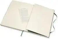 Kenmerken: afgeronde hoeken, elastische sluiting, ivoorkleurig Moleskine-papier, bijpassend leeslint, papier: 70 gsm, zuurvrij, “In geval van verlies”-label op het schutblad, uitbreidbaar binnenvak op achterkaft.