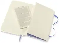 Kenmerken: afgeronde hoeken, elastische sluiting, ivoorkleurig Moleskine-papier, bijpassend leeslint, papier: 70 gsm, zuurvrij, “In geval van verlies”-label op het schutblad, uitbreidbaar binnenvak op achterkaft.