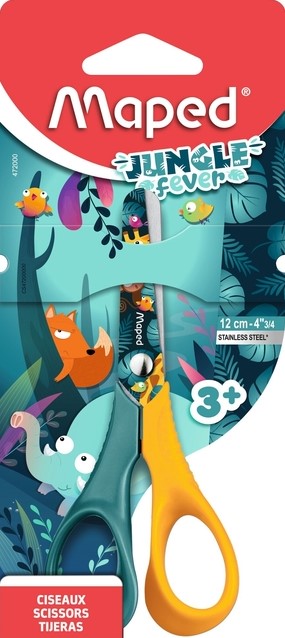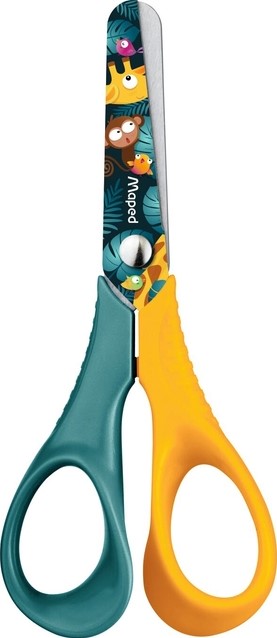 Deze roestvrijstalen schaar van 12 cm is perfect om uw kinderen te leren kleine vormen te knippen. Deze schaar is volledig aangepast aan kleine handen dankzij hun ergonomische 3D-handgrepen. Met zijn versierde bladen met ronde punten is er geen risico op letsel voor peuters!