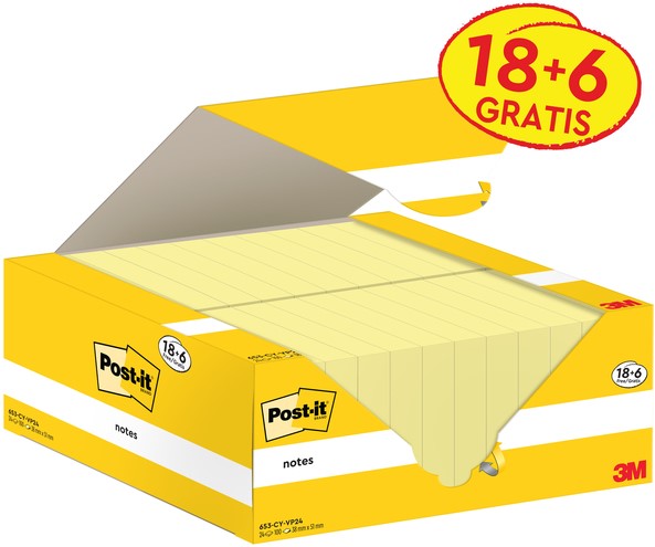 Memoblok 3M Post-it 653 38x51mm geel 16 + 4 gratis