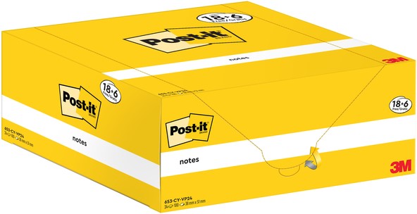 Memoblok Post-it 653 38x51mm recycled geel 24 stuks