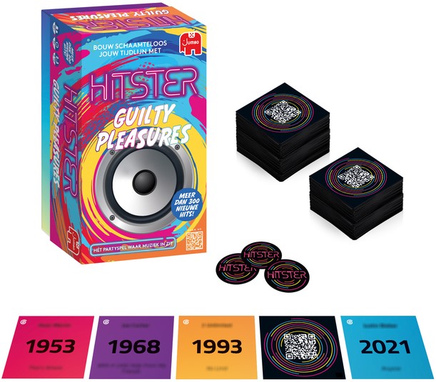 Het feestje gaat door met HITSTER Guilty Pleasures! Het leukste party spel komt nu met een nieuwe editie, dit keer met de meest foute hits van de afgelopen decennia. Bouw schaamteloos jouw tijdlijn met Guilty Pleasures want zeg nou zelf, stiekem kan iedereen ze toch meezingen?
