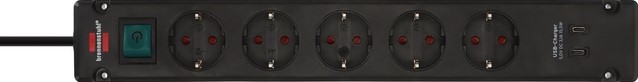 Stekkerdoos Brennenstuhl Bremounta 5vdig incl 2 USB C 3 meter zwart