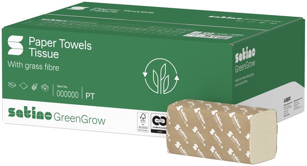 Aantal vellen: 250 vel Satino GreenGrow is hoogwaardig hygiënepapier met bijzonder duurzame eigenschappen. Producten uit deze productlijn wordt gemaakt van gerecycled papier, aangevuld met verse vezels van Miscanthus-gras. Deze grassoort wordt lokaal geteeld in West-Europa en de bodem wordt niet bemest, geploegd, bespoten of ingezaaid. Met een levensduur van vijftien tot twintig jaar lang groeit dit supergewas ieder jaar tot wel 4 meter hoog, waardoor het de bijnaam 'Olifantengras' heeft gekregen.