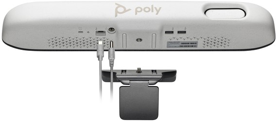 Inhoud van de doos: Poly Studio R30; Monitorklem; Wisselstroomadapter; Netsnoer; USB Type-C® naar USB Type-A-kabel; Installatiehandleiding; Verwijderbare privacyafdekking.