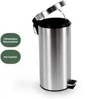 De BRASQ Pedaalemmer is een onmisbaar item en past in elke kamer. Klein, praktisch, lichtgewicht en met een modern en strak design. Met zijn handige formaat is deze RVS prullenbak een toevoeging in badkamer of toilet. De pedaalemmer heeft een uitneembare kunststof binnen emmer met handvat van 30 liter. De emmer is eenvoudig te legen en te reinigen. De prullenbak heeft een voetpedaal met antislip profiel waardoor hij eenvoudig te bedienen is. Doordat je de deksel opent met het voetpedaal minimaliseer je het contact met bacteriën en geuren die zich bij de afvalbak kunnen ophopen. Met deze voetfunctie hoef je je geen zorgen te maken over het aanraken van vuilnis of het verspreiden van bacteriën, waardoor de omgeving van de pedaalemmer hygiënische blijft. De prullenbak, met een doorsnede van 29 cm, is ook handig te gebruiken op de (thuis)werkplek. Deze pedaalemmer staat altijd netjes! De onderzijde van de pedaalemmer is uitgerust met een kunststof beschermrand waardoor hij stabiel blijft staan en dit voorkomt ook krassen op de vloer. De BRASQ Pedaalemmer is een geurdichte en perfect sluitende afvalemmer, handig in gebruik en onmisbaar in elk huishouden of sanitaire omgeving.