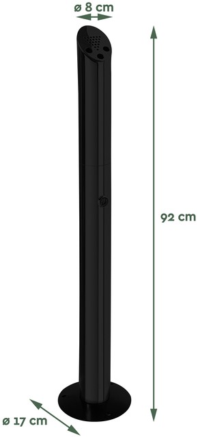 De fraaie staande asbak van BRASQ draagt bij aan een schone en opgeruimde omgeving als het gaat om sigaretten of sigaren peuken. Deze rookpaal, of peukenzuil, heeft een luxueuze en moderne uitstraling en is gemaakt van geborsteld hoogwaardig RVS (Stainless Steel 304). Door de hoge mate van corrosiebestendigheid van dit materiaal kan hij weer en wind doorstaan. Met een hoogte van 92cm, en een doorsnede van 17 cm aan de onderkant en 8 cm aan de bovenkant, staat hij nooit in de weg. De BRASQ AT300 heeft een handig uitdrukvak om de sigaret te doven en 3 gaten om de peuk te deponeren.