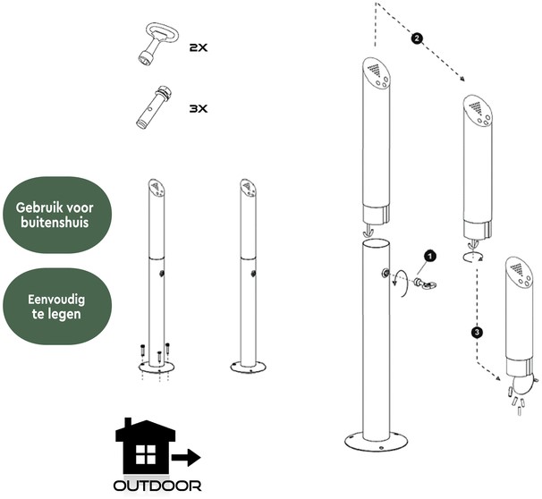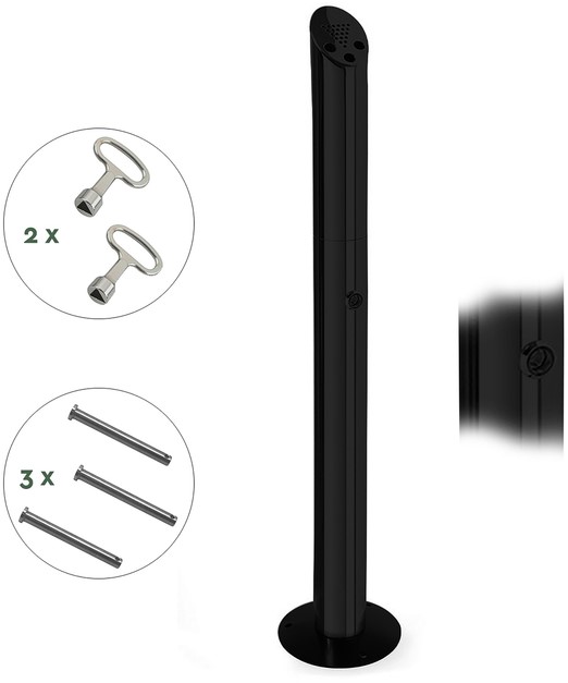 De zuil is zeer eenvoudig te legen. De staande asbak van BRASQ vangt de peuken op in het onderste gedeelte van de kolom. Door deze constructie, is er een beperkte zuurstof toevoer en doven de peuken snel. Dit komt de veiligheid van gebruiker en omgeving ten goede. Door het klepje onderaan met de sleutel te openen kun je de inhoud gemakkelijk legen. Sluit de asbak vervolgens weer met de sleutel. Tot slot, de asbak is geschikt voor iedereen die op een professionele wijze de sigarettenpeuken wilt opvangen, waardoor de werk- en leefomgeving opgeruimd en schoon blijft.