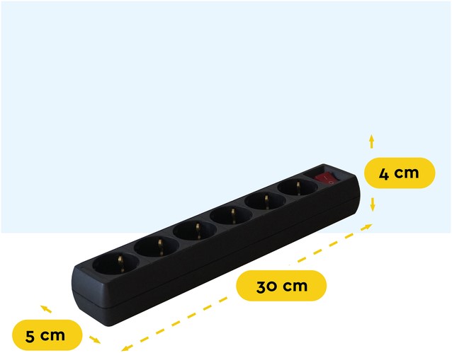 De stekkerdoos met 6 sockets, die geschikt is voor binnenshuis gebruik, is voorzien van geaarde stopcontacten en een hoofdstekker met PEN-aarde. Hij heeft een compacte afmeting van 30x5x4cm en biedt dus een oplossing voor de meest krappe ruimtes. De stekkerdoos is direct klaar om te gebruiken en geschikt voor geaarde en niet-geaarde apparaten.