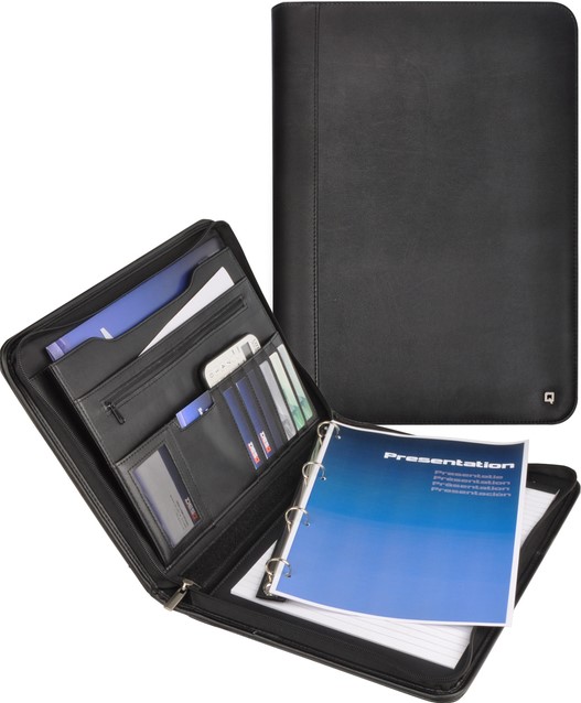 Door de rondom lopende ritssluiting kun je de schrijfmap volledig afsluiten. Zo kun je de schrijfmap overal mee naar toe nemen zonder het risico te lopen iets te verliezen.