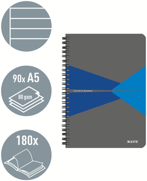 Notitieboek Leitz Office A5 lijn 180 pagina's 80gr grijs blauw