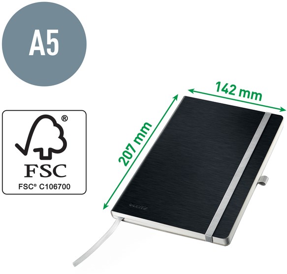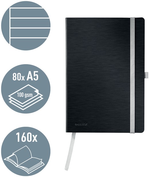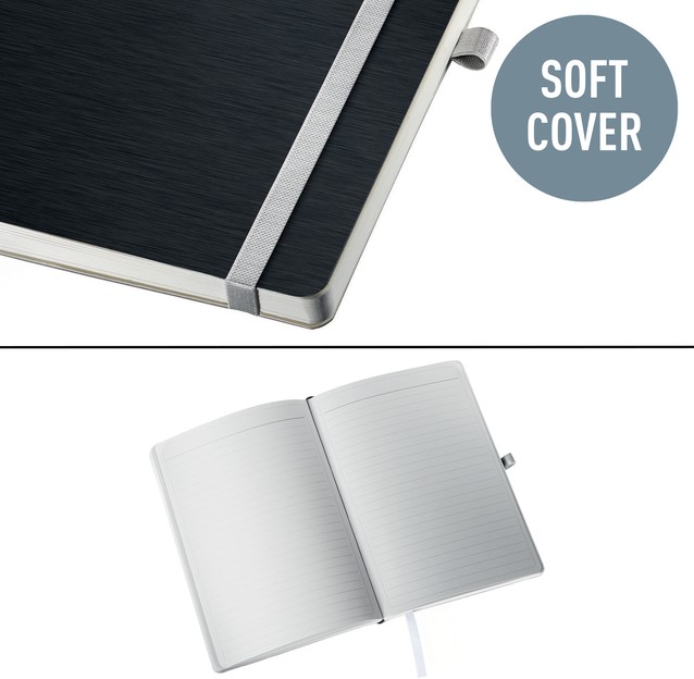 Klassiek notitieboek van hoge kwaliteit met eersteklas omslag in moderne, zacht geborstelde afwerking en elegante kleur. Pennenhouder, elastieksluiting en een binnenvak op de achterkant maken de notitieboekjes nog functioneler.