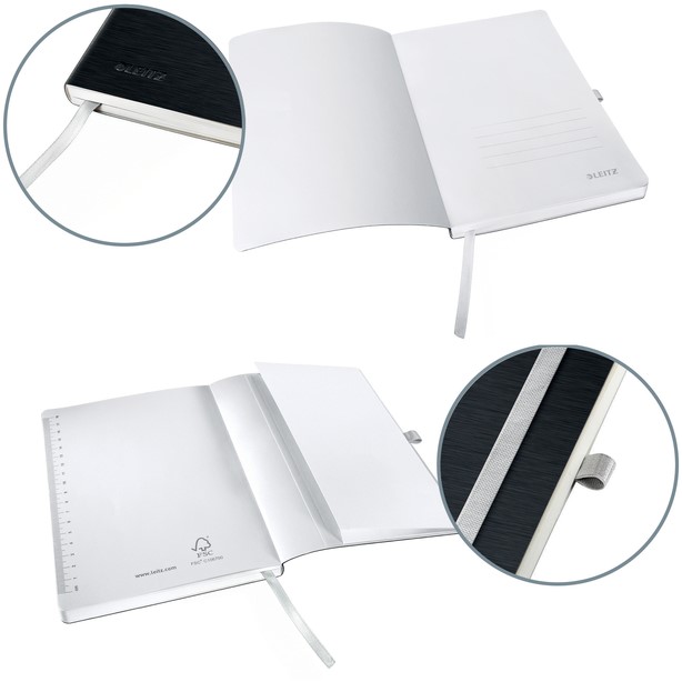 Aantrekkelijke zilverkleurige elastische band houdt de pagina's stevig vast