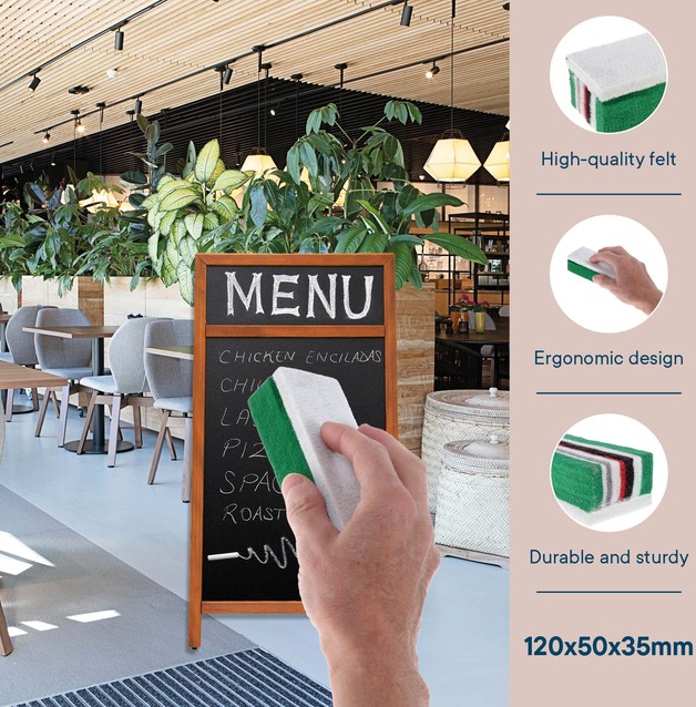 Hoogwaardige materialen: Gemaakt van premium vilt dat zacht maar effectief is voor het grondig wissen van krijt, zonder het bordoppervlak te beschadigen.