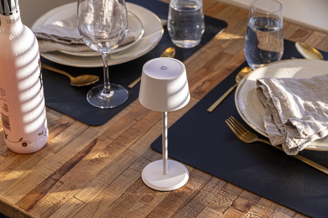 De draadloze, oplaadbare batterij maakt deze lamp uiterst flexibel in gebruik, zowel binnen als buiten. Ideaal voor thuis, op het terras of in een stijlvolle horecazaak. Met zijn moderne witte design past hij perfect in elke interieur- of horecaomgeving. Dankzij de traploos dimbare LED-verlichting creëer je eenvoudig de juiste sfeer – van zacht achtergrondlicht tot helder leeslicht.