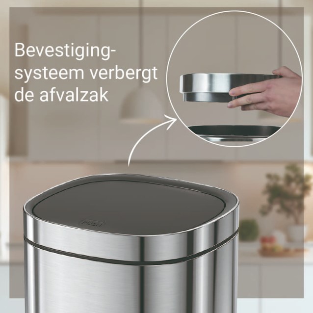 Onzichtbare afvalzakbevestiging verbergt en houdt de afvalzak vast