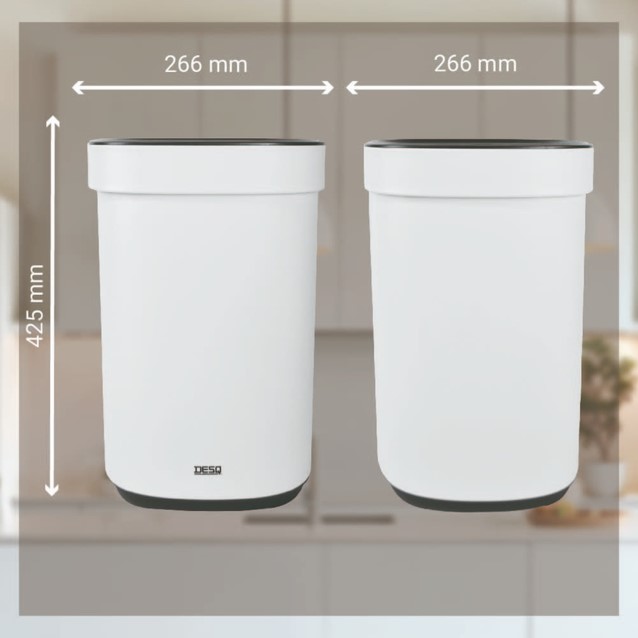 DESQ afvalemmers zijn ontworpen voor gebruiksgemak, duurzaamheid en stille werking. Twee speciaal ontworpen randen houden de afvalzak op zijn plaats en verbergen hem voor een netter en schoner uiterlijk. Gemaakt van hoogwaardig metaal, voorzien van een onzichtbare vingerafdrukbestendige coating om de verspreiding van bacteriën te voorkomen.