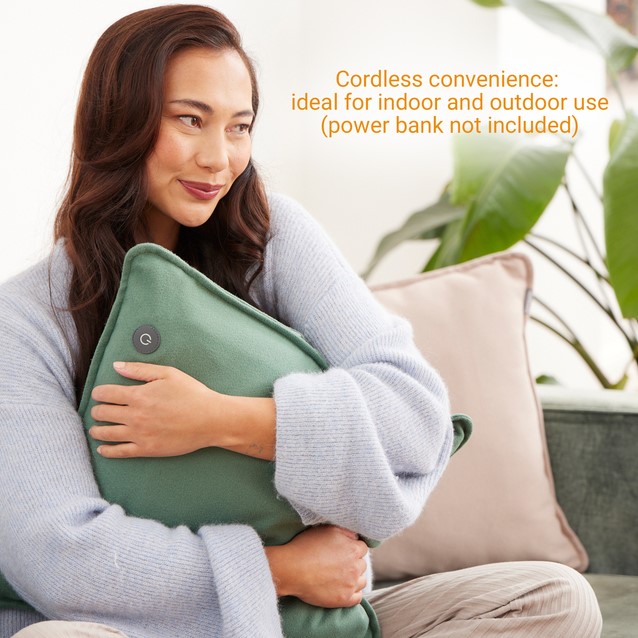 Dankzij het draadloze gebruik met een powerbank ben je niet afhankelijk van stopcontacten. Het HC 250 verwarmingskussen heeft een ingebouwde binnenzak en een geïntegreerde USB-A-aansluiting voor de powerbank, waardoor flexibel gebruik mogelijk is. Het verwarmingskussen wordt zonder powerbank geleverd omdat het compatibel is met elke in de handel verkrijgbare powerbank - als alternatief is een medisana powerbank apart verkrijgbaar.