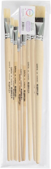 Kwastenset Qrea varkenshaar – set van 12 stuks. Ontdek de veelzijdigheid van de Qrea kwastenset, perfect voor een scala aan toepassingen in kunst en kluswerk. Elke kwast in deze set heeft een platte vorm en is uitgerust met een stevige bus van hoogwaardig plaatmetaal, wat zorgt voor maximale precisie en duurzaamheid. Het ruwe handvat van blank hout biedt een stevige grip, zelfs tijdens langdurig gebruik. Of je nu werkt met verf, primers, lak, lijm of impasto-technieken – deze set staat altijd voor je klaar en is essentieel in elke creatieve of professionele toolkit. Kenmerken: