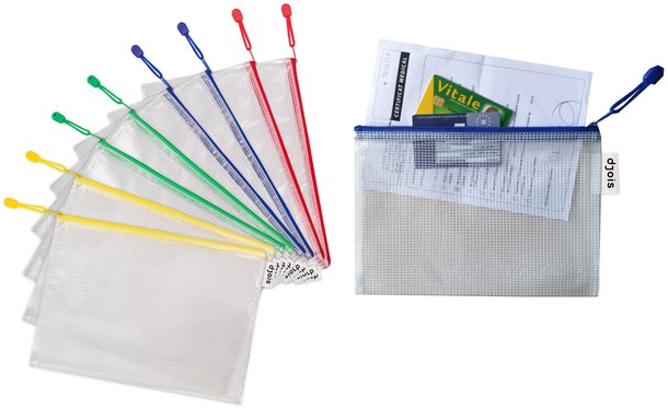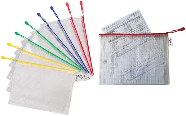 Versterkte opbergtassen met ritssluiting verkrijgbaar in 4 maten en 4 kleuren voor een organisatie in kleurenthema. Perfect om uw documenten of kleine voorwerpen veilig te beschermen en mee te nemen. Een stoer en betrouwbaar accessoire voor op kantoor, in de fabriek, thuis, op school of op reis. Productbeschrijving: