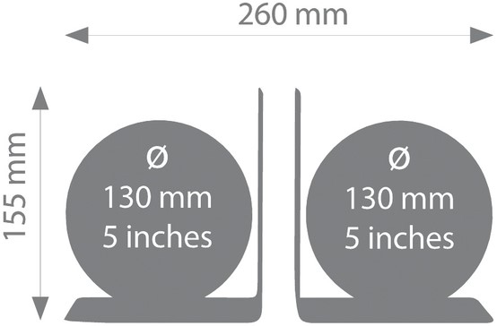 Wanneer de boeksteunen naast elkaar worden geplaatst, beslaan ze een breedte van 26 cm.