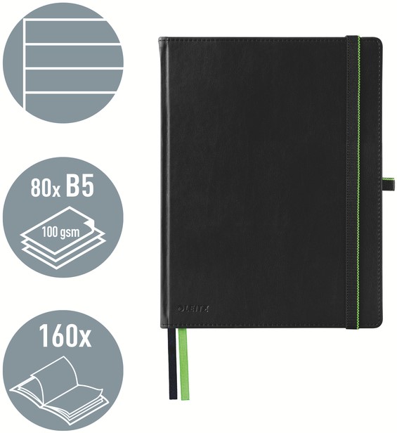 Notitieboek Leitz Complete 187x242mm lijn 160 pagina's 100gr zwart