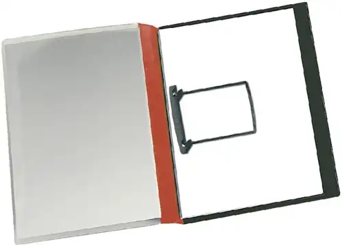 De achterzijde heeft een insteekvak voor losse documenten.