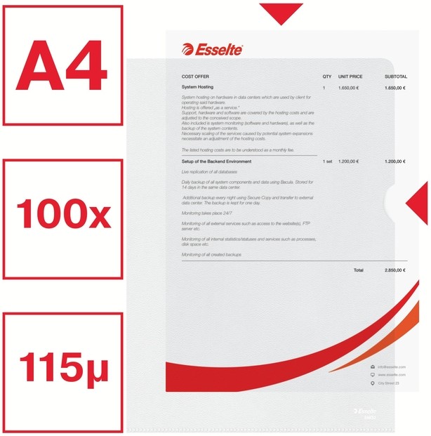 Insteekmap L-model Esselte standaard copy safe 0.11mm PP A4 glashelder 100 stuks