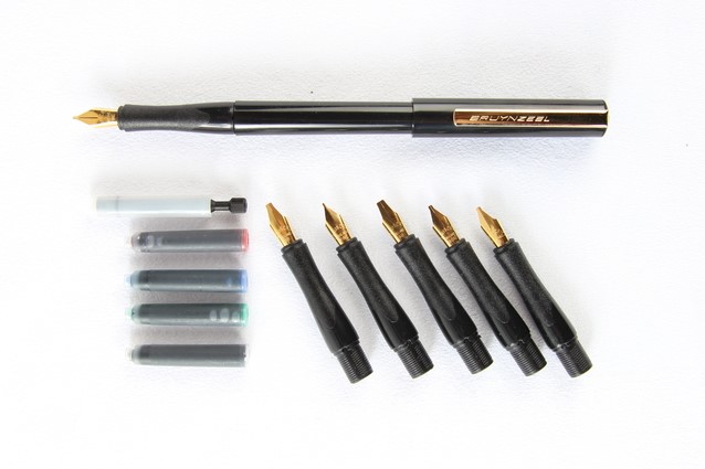 Professionele kalligrafeersets met wisselbare metalen punten.