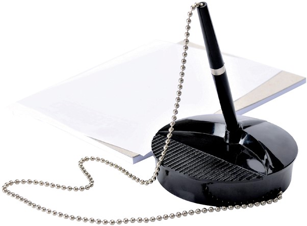 Met zelfklevende kussentjes voor bevestiging op toonbank of bureau.