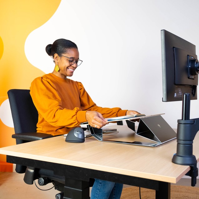 Met de R-Go Read2Write documenthouder wordt je onbewust gestimuleerd om in een rechte houding te werken. Deze lichtgewicht documenthouder is eenvoudig te transformeren in een schrijfblad door het blad naar je toe te trekken. Door het werk naar je toe te halen, voorkom je een voorovergebogen houding.