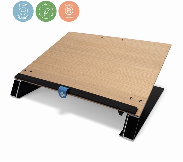 Naast ergonomische kenmerken heeft deze documenthouder en lessenaar in 1 een uniek design. Hij is gemaakt van lichtgewicht aluminium met een dun blad van eikenhout.